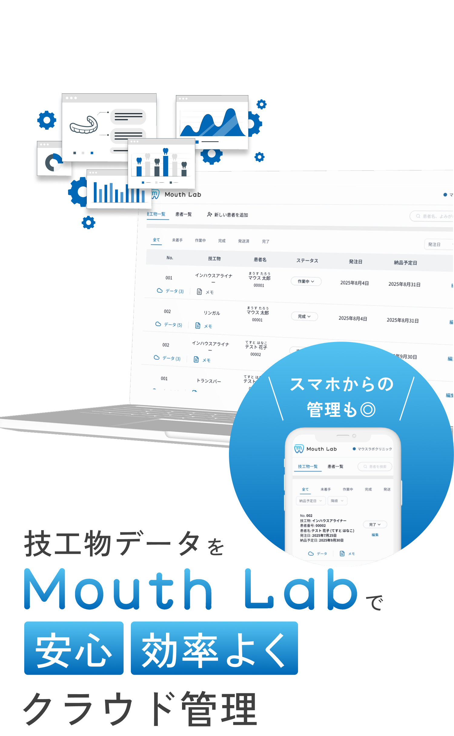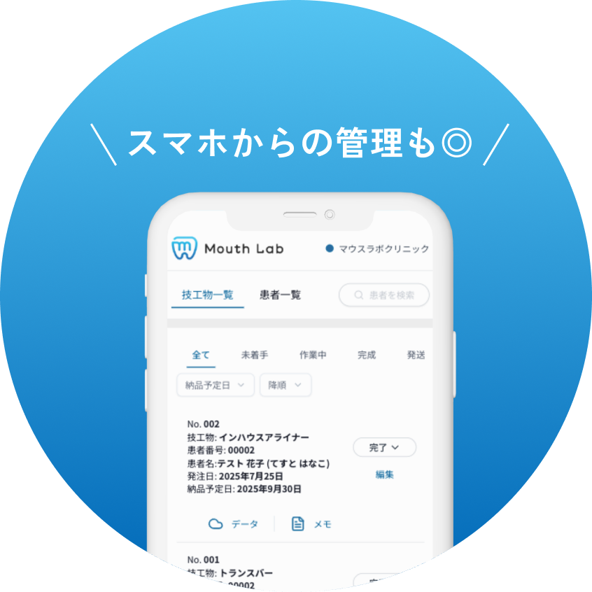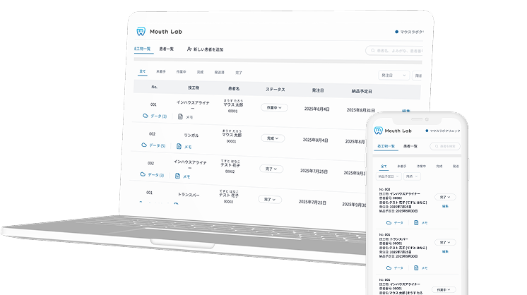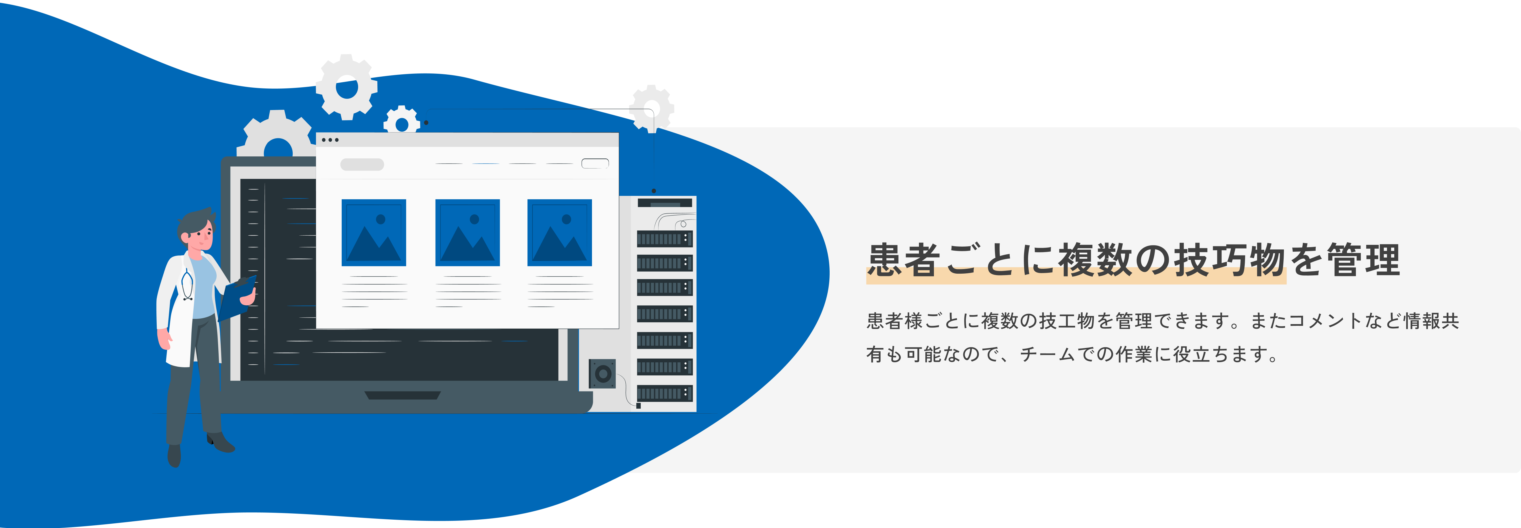 患者様ごとに複数の技工物を管理できます。またコメントなど情報共有も可能なので、チームでの作業に役立ちます。